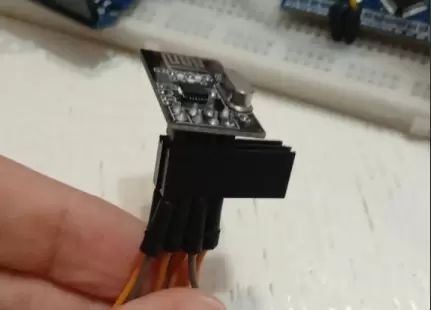 Эти радиомодули имеют такое свойство, что у них все контакты собраны в группу 2*4, и в макетную плату такая группа не вставляется. Значит, нужны провода с гнездом "мама". У меня таких не хватало на оба модуля, хватало только на один, поэтому для второго надо было наколхозить что-нибудь, либо ждать с AliExpress новые провода.