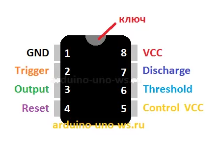 Таблица назначения выводов микросхемы NE555