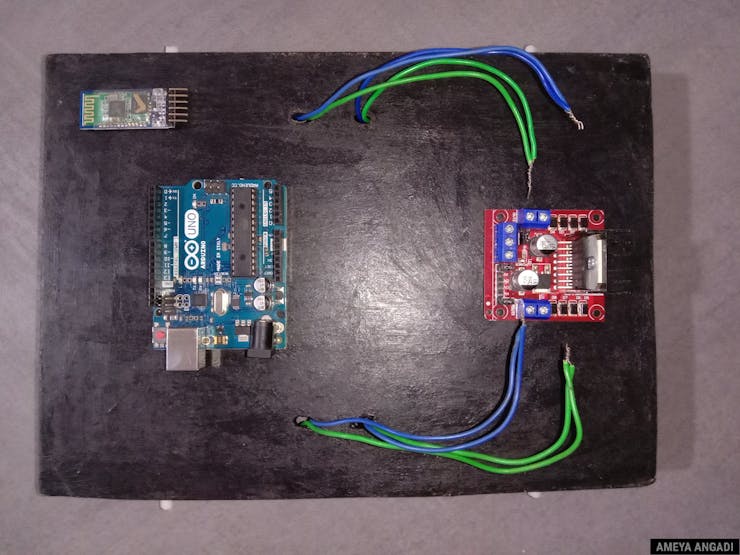 Закрепите четыре мотора с колёсами на шасси -- по два с каждой стороны. Arduino и драйвер L298N установите на платформу сверху. Аккумулятор можно разместить снизу для лучшего баланса. Проложите провода аккуратно, следя за тем, чтобы они не попадали в колёса и не натягивались при повороте.