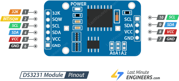 Модуль DS3231 решает все три проблемы. Это микросхема часов реального времени (RTC) со встроенным кварцевым генератором с температурной компенсацией. Отклонение — всего 1-2 минуты в год. Батарейка CR2032 на плате модуля хранит время даже без внешнего питания — до 5-8 лет. Бонус: внутри DS3231 есть датчик температуры, и мы покажем его показания на экране.