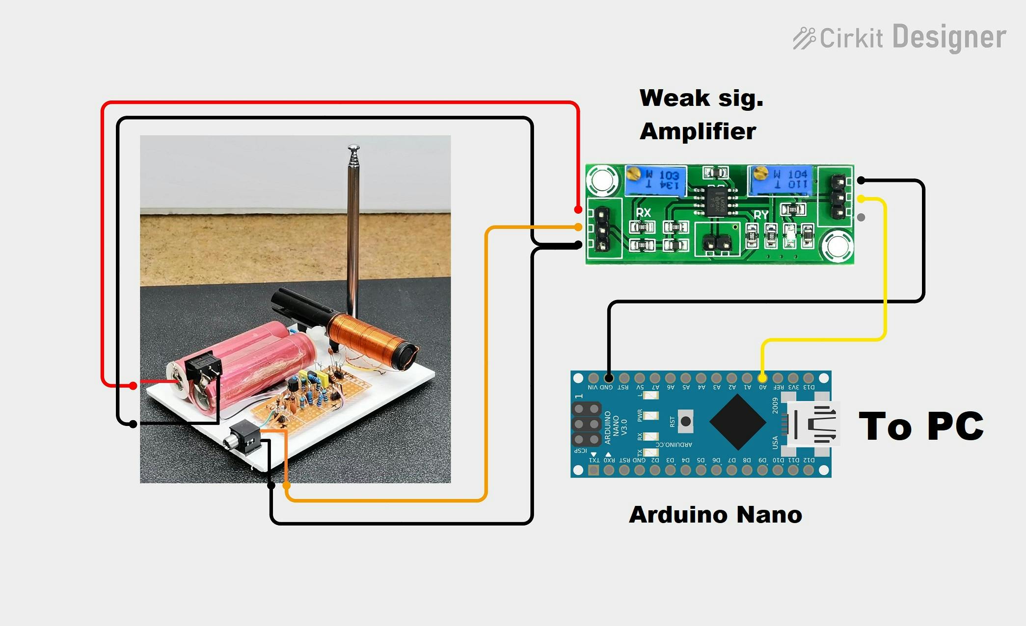 Усиление. Модуль усилителя слабых сигналов -- ключевой элемент. Электромагнитный импульс от молнии на расстоянии 50 км создаёт на антенне напряжение в микровольты. Без усиления в 1000-10000 раз Arduino просто не увидит его на фоне собственного шума АЦП.