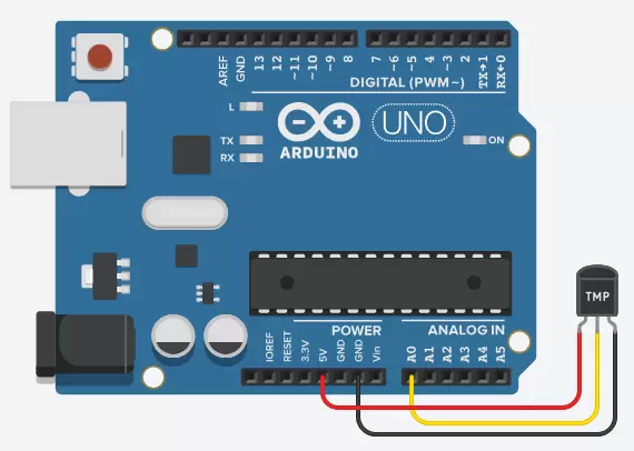 LM35 выдаёт напряжение, пропорциональное температуре (10 мВ/°C).