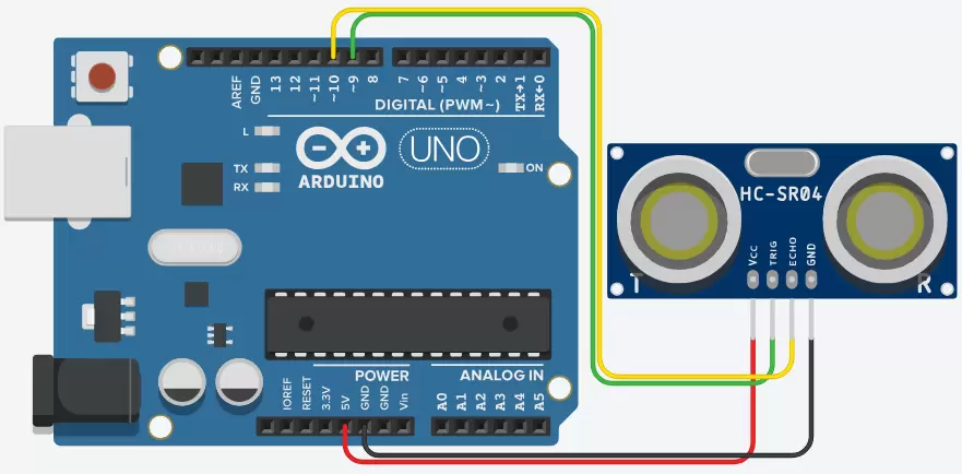 *Рис. 5 — Схема подключения ультразвукового датчика расстояния HC-SR04*